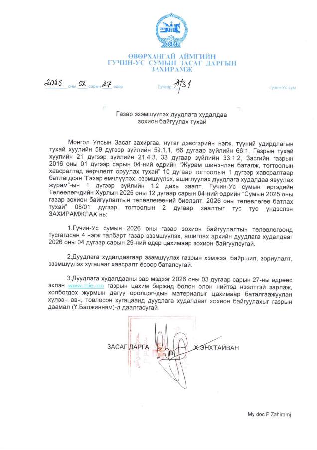 - Гүйцэтгэх албан тушаалтны сонгон шалгаруулалтын зар