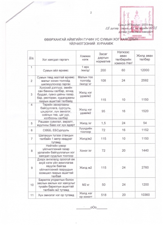 - Төлбөр хураамж, төлбөрт үйлчилгээний жагсаалт