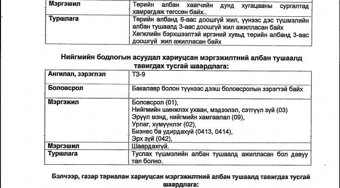 Тусгай шалгалтын зар