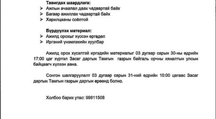 - Гүйцэтгэх албан тушаалтны сонгон шалгаруулалтын зар
