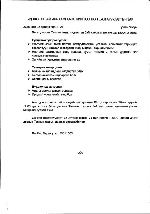Түр орон тоонд гэрээт ажилтан сонгон шалгаруулж авна.